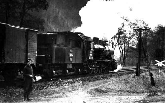 Cernavoda Pod station as seen in March 1941. A Class 50 steam locomotive can be seen at the right.