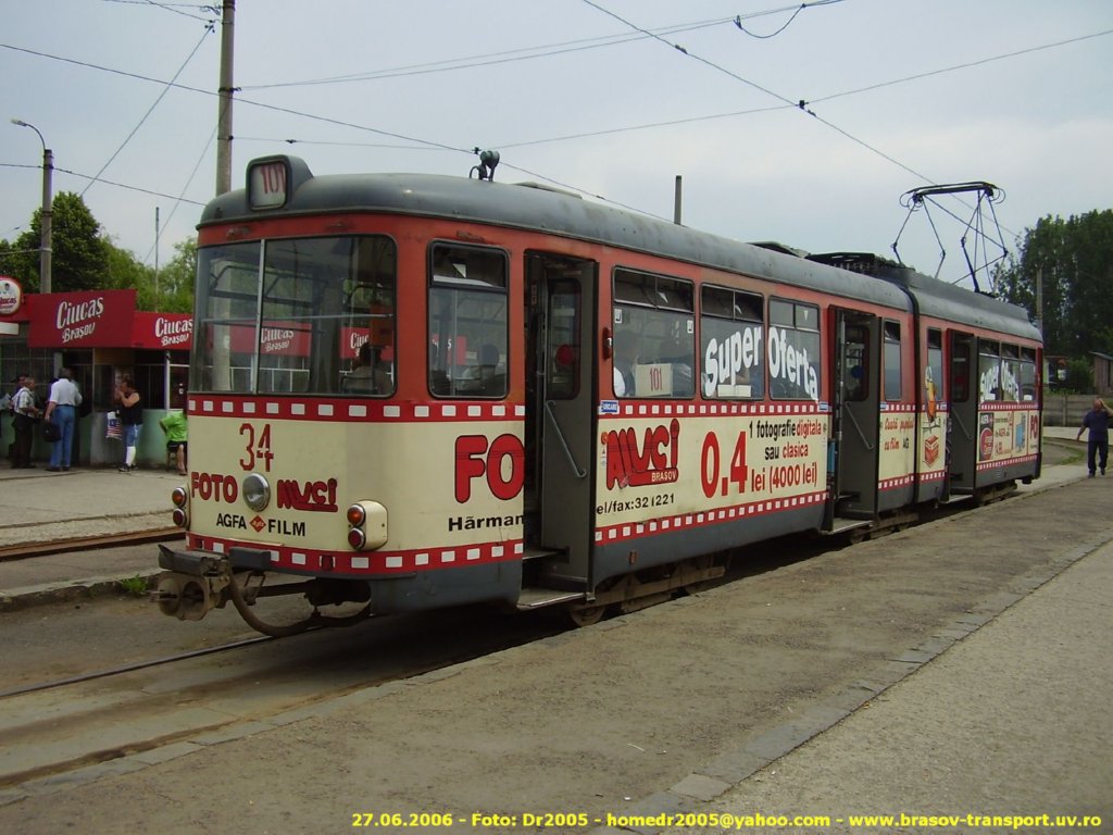 R.A.T.Bv. (Regia Autonoma de Transport Brasov) Duewag M #34 -ex-Franfurt-am-Main #641 Linie 101, "Rulmentul" Terminal. The last run of a tram in Brasov was on 17th of November 2006. Photo by Dr2005 - transportbucuresti.trei(a)gmail.com; More photos are available at www.brasov-transport.uv.ro. |