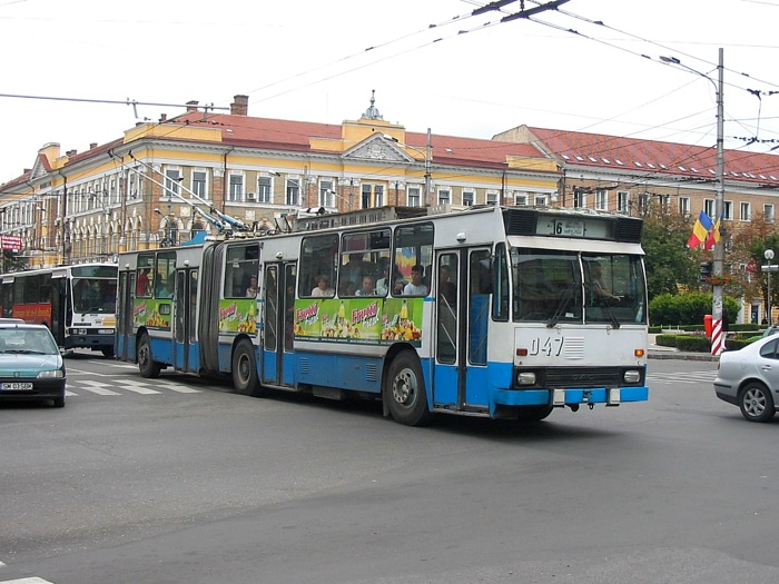 Trolleybus 047 A Rocar 217EA trolleybus from 1997, at Piata A. Iancu. Egy Rocar 217EA trolibusz 1997-ből, a Piata A. Iancu-n (a volt Bocskai téren). Fotó: Németh Zoltán Ádám (nza@freemail.hu) |