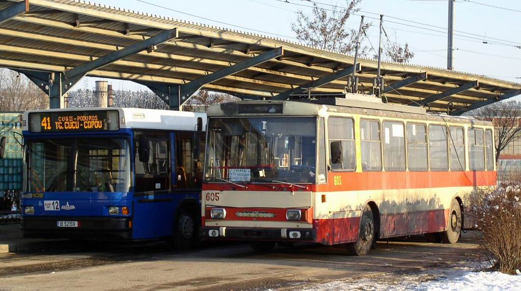 Skoda 14Tr01 trolleybus #605 in Iasi. These are sadly the last days of the trolleybus in Iasi, they are all being scrapped due to the mayors personal affairs. Date: February 18th, 2006.