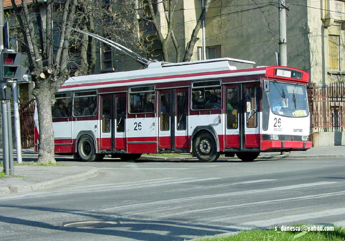 Trolleybus Renault no 26 (ex-Lyon TCL), wearing original livery. Photo taken in Timisoara, 26 03 2002.