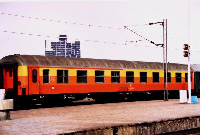 JZ fast-train passenget car ABl 51 72 39-10 908-3 at Skopje, Macedonia, February 2000. Photo by Slobodan Ilic, |