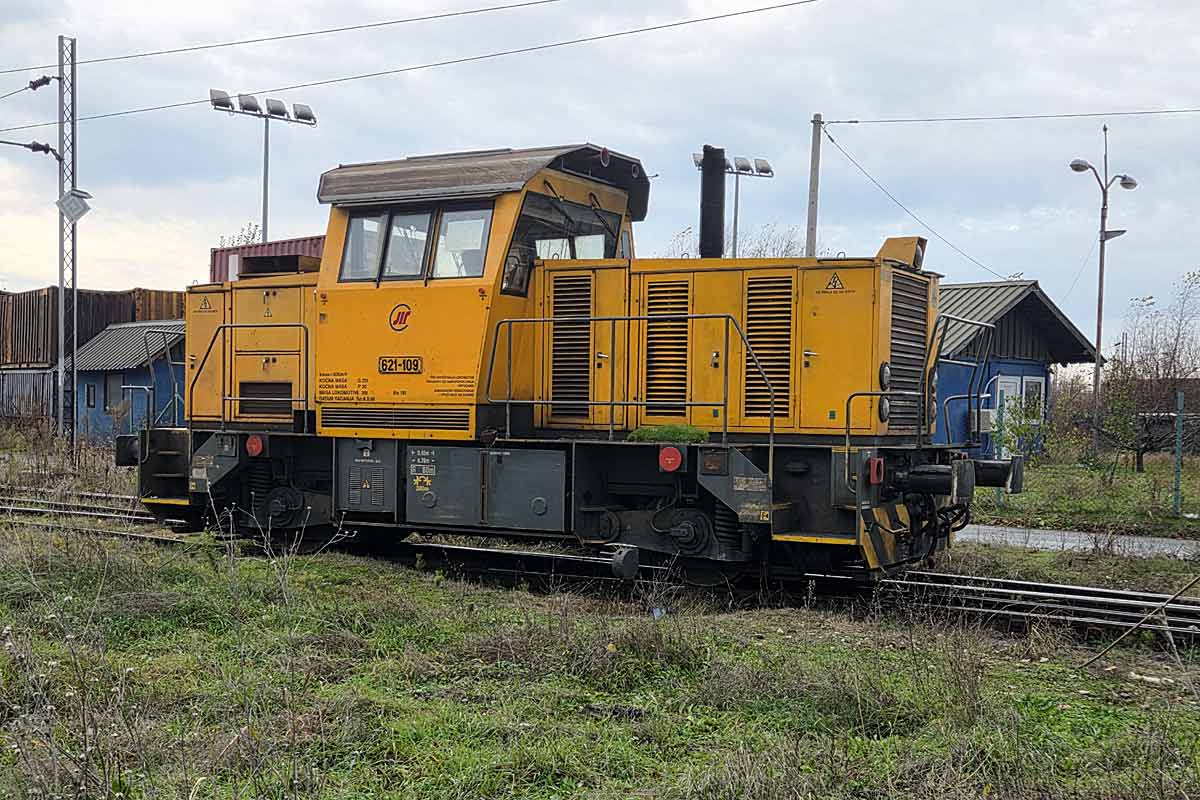 Serbian ZS(SV/SKG) Zeleznice Srbije Diesel shunter 621 109 in service at Beograd Ranzirna Freight Yard. 03/12/2025.