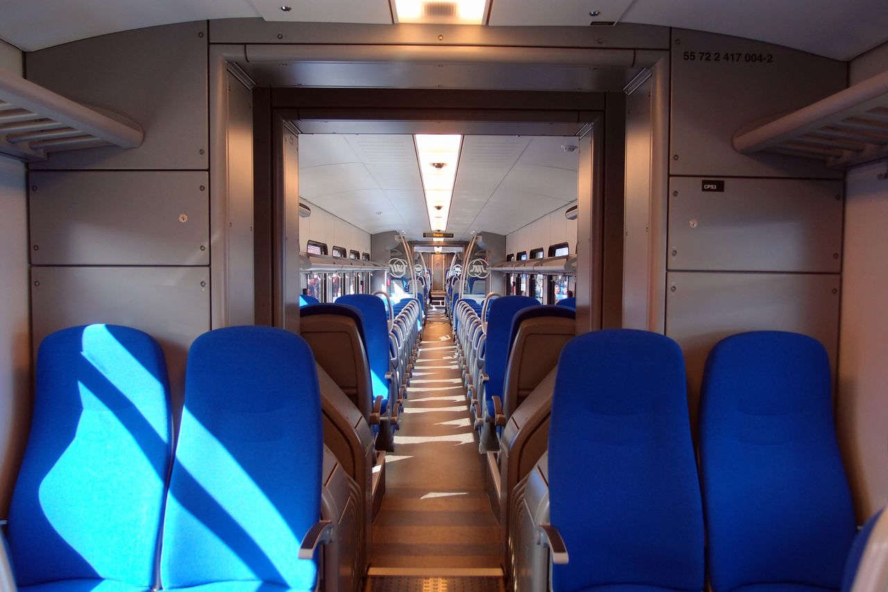 An interior in EMU Stadler "Flirt 3" of ZS ( Zeleznice Srbije / Serbian Railways), using a passenger train.
