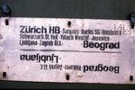 Destination board for IC333 "Ivo Andric" (not an IC anymore) on a JZ Bl car at Budapest-Keleti on May 14, 1999. The "Ivo Andric" international train now runs only as far as Novi Sad until the railway bridge over the Danube is rebuilt. Photo and scan by Frank Válóczy |