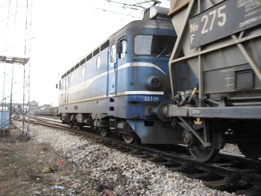 441-05 "TE Nikola Tesla Obrenovac" engine is entering in Kolubara station.