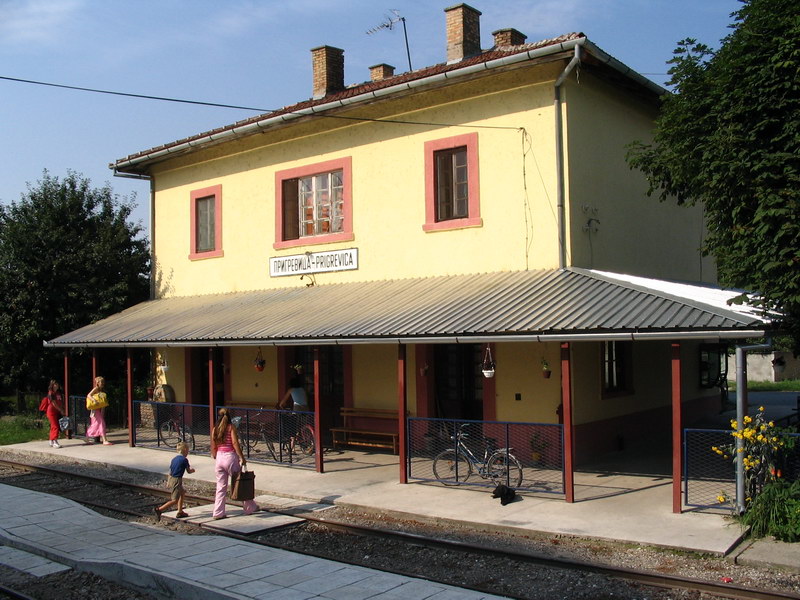 Nova Pazova railway station seen from B 411, 26 Jul 2005