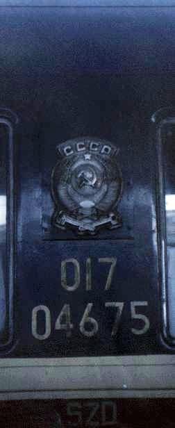 Wappen der Sowjetischen Staatsbahnen an einem russischen Reisezugwagen (017 04675);