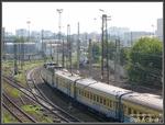RZD Moskva-Minsk-Vilnius-Kaliningrad express 29/30 "Jantar" is arriving from Kaliningrad to Moskva with RZD high-speed electric locomotive ChS7. On the picture are visible two new RZD coupe sleepers, built by TVZ (TverVagonZavod, Russia), and mail+luggage car. The way between Begovaja station and Moskva-Belorusskaja terminus (Belorussky terminus). 2004.08.13.