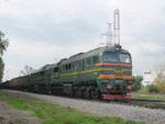 Disel locomotove 2M62U-0034 with freigth train, departiring from Lublino station. 21.10.2004. © Artem Svetlov. trolleway @ aport.ru http://trolleway.tramvaj.ru |