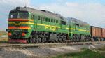 RZD Locomotive 2M62U-0154 from depot Velikiye Luki, October railway, Russian Federation, near Soltsy station, Novgorod region.