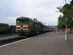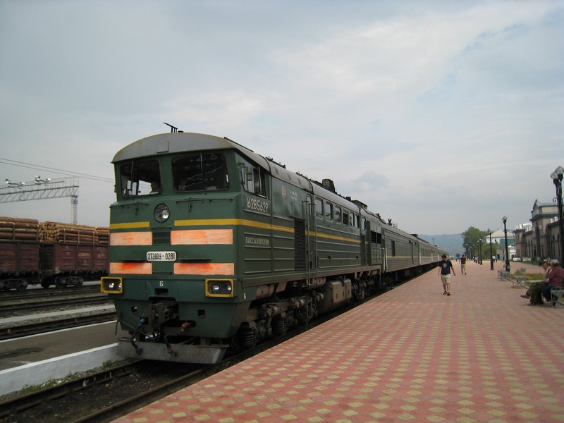 "Half-locomotive" 2TE10U 0283 with train 6 (Moskva - Ulan-Bator) at Ulan-Ude.