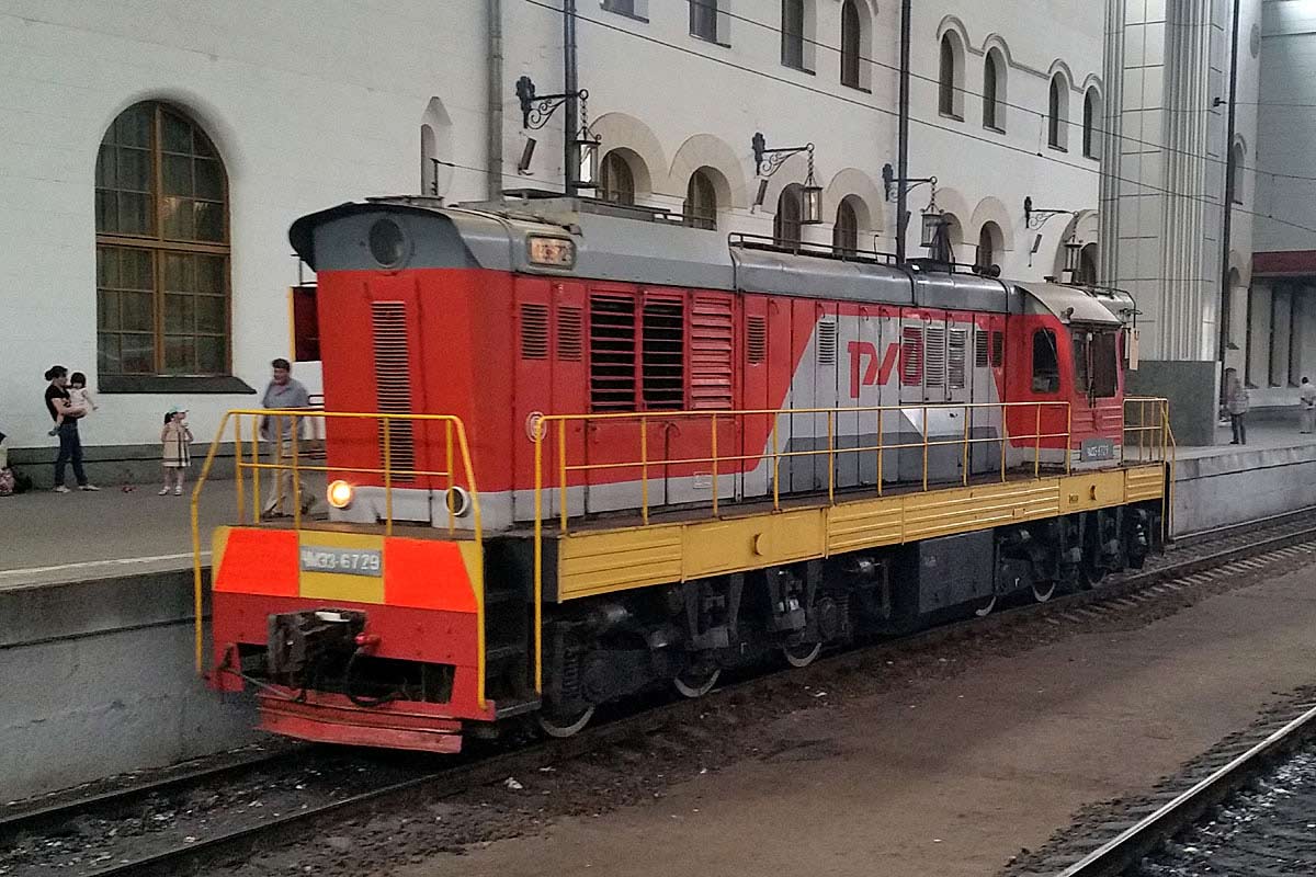 RZD - Rossiyskye Zheleznye Dorogi (Russian Railways) Diesel-Electric Shunter ChME3-6729 (Co'Co'), a very popular class built from 1964 in many sub-classes. Power 993 kW, Tractive effort 356 kN, max speed 95 Km/h-