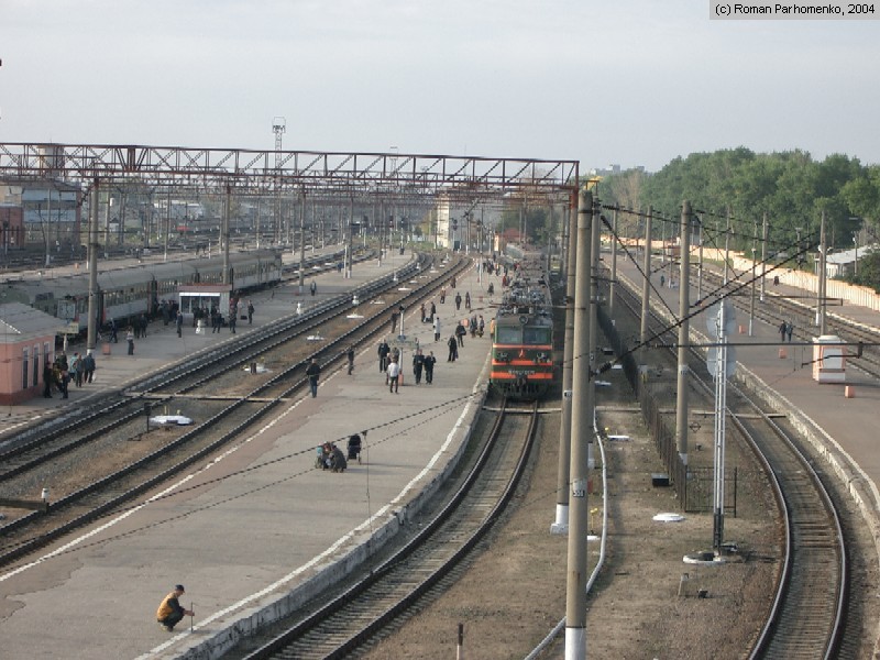 Russia, The Moscow railway, Electric locomotive VL80 at station Bryansk Lgovsky (Брянск Льговский), May 2004