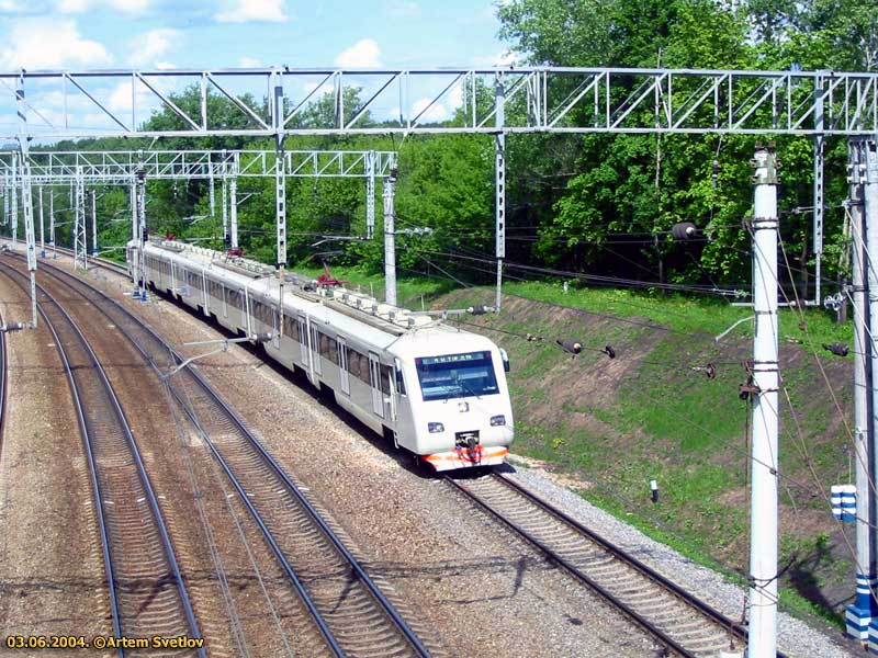 Some EM4 trainset on line Moscow - Ramenskoe. Lubertsy-1 station 10.08.2005. © Artem Svetlov. trolleway @ mail.ru http://trolleway.tramvaj.ru |