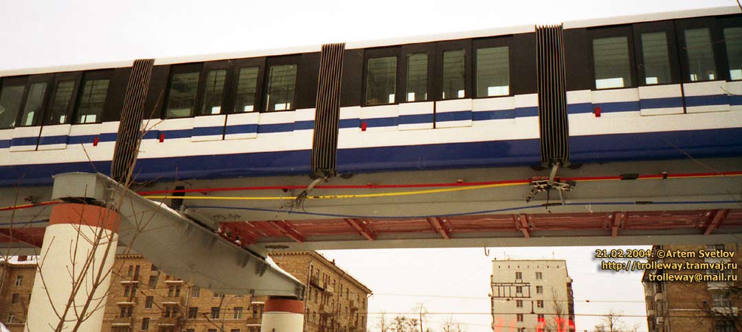 Moscow monorail. Train near "Ulitsa Akademika Koroleva" station. 05.12.2004. © Artem Svetlov. trolleway @ aport.ru Electrical transport of Moscow region |