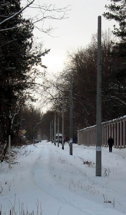 Kratovo children railway, Moscow region. Temporailty track (gauge - 750 mm) from station Ynost to platform Otdyh of "big" railroad, used for delivery new narrow-gauge cars. 27.11.2004. © Artem Svetlov. trolleway @ aport.ru Electrical transport of Moscow region |