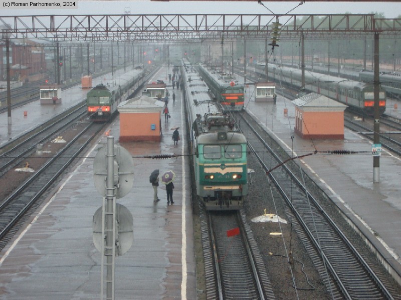 Russia, The Moscow railway, Southern fork of station Bryansk Lgovsky (Брянск Льговский): to the right - Gomel (Belarus), on the left Lgov, Kiev (Ukraine), August 2004