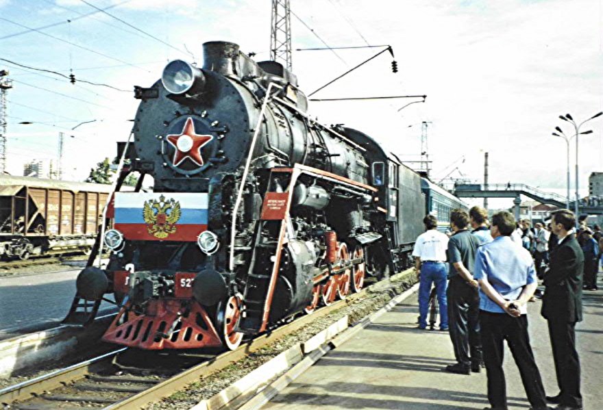 Special train with steam engine (unfortunately I had no time to take down the number during the stop of my train (No. 009)) at Krasnojarsk Passashirskij; 2002-07-31