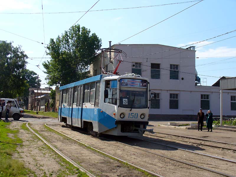 Kolomna. Tramway 71-608KM #152, bulit by UKVZ in 1997. Route #5, stop "Sovietskaya ploshad". 11.09.2003. More information about Kolomna tramway - on kolomnatram.by.ru and trolleway.tramvaj.ru/tram/kolomna © Artem Svetlov. trolleway @ narod.ru, Photogallery tramcars of Moscow |