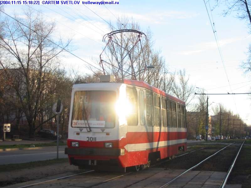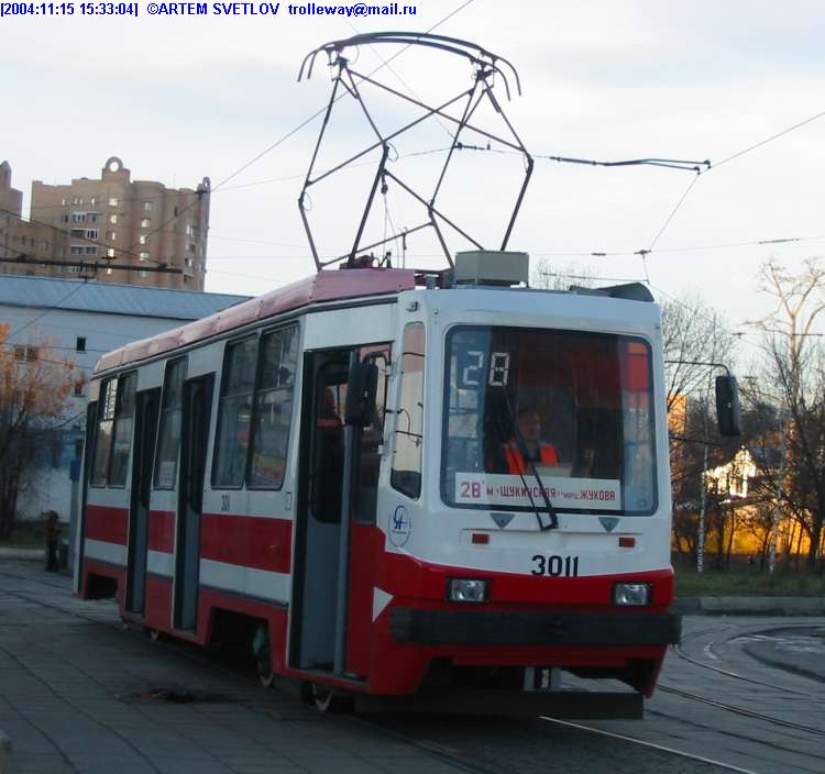 15.11.2004. Moscow. Tramway 71-134A (LM-99A) #3011. Route 28k, terminus "Metro Shukinskaya". © Artem Svetlov. trolleway @ aport.ru http://trolleway.tramvaj.ru |