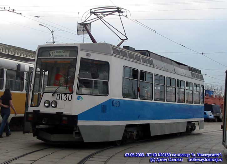 LT-10 #0130 on end station Universitet. 07.05.2003. © Artem Svetlov. trolleway @ narod.ru, Photogallery tramcars of Moscow |