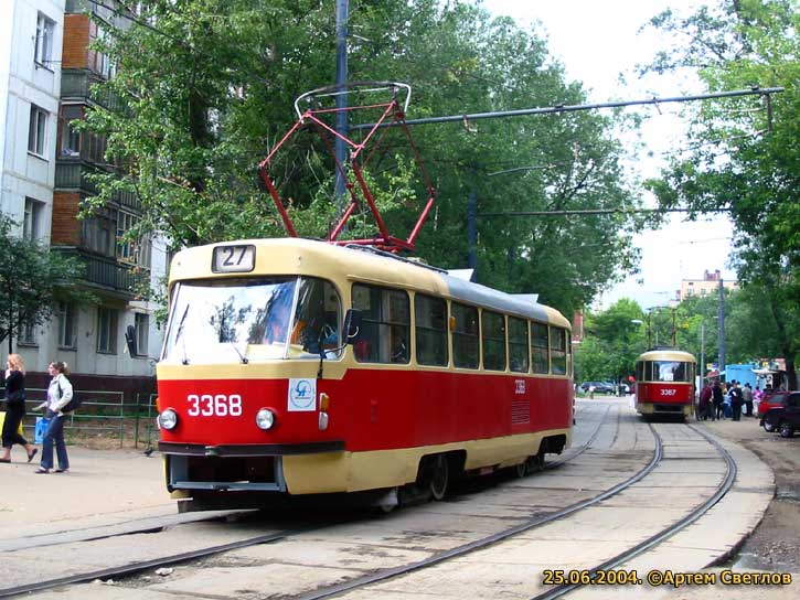 Modernized tramway car MTTCh ¹3368 in Mikhalkovo on route #23. 25.06.2004. © Artem Svetlov. trolleway @ narod.ru, Photogallery tramcars of Moscow |