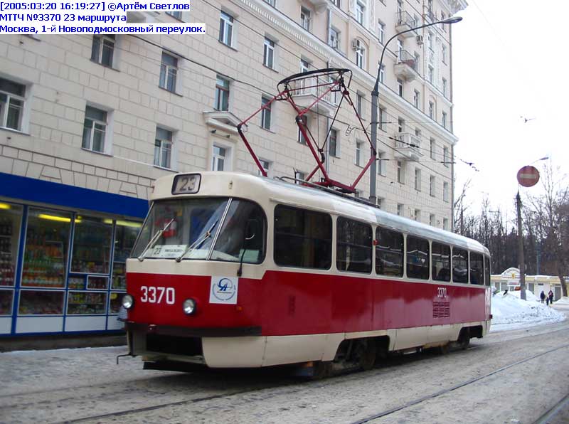 Modernized tramway car MTTCh ¹3370. Route #23, near Voikovskaya metro station. 20.03.2005. © Artem Svetlov. trolleway @ aport.ru Electrical transport of Moscow region |