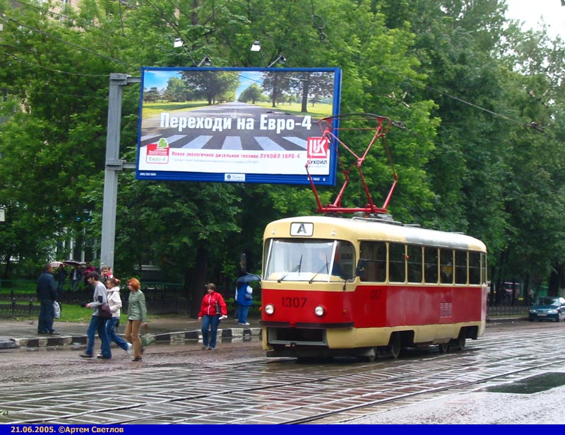 Modernised tramway car MTTD #1307 Route A Shabolovka street 21.06.2005. © Artem Svetlov. trolleway @ mail.ru http://trolleway.tramvaj.ru |