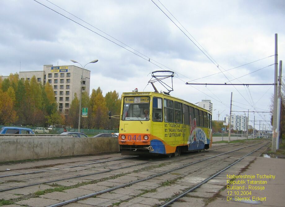 | IMG 1252 Nabereshnije Tschelny 12.10.04 Tram 044, Bj. 1986 auf Linie 3 in Richtung KPP-6, an der Hst."Globus" Dr. Sternol, Eckart (Foto), Eckart.Sternol@bahn.de |