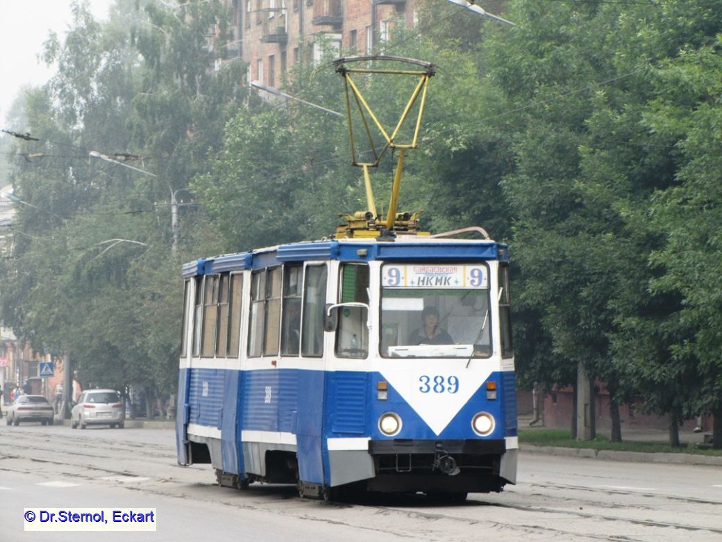 | Tram 389, Linie 9, im Morgennebel nahe der Hst. Metjolkina (Metjolkinstr.) in Richtung NKMK, was die Abkürzung für das Nowokusnezker Metallurgische Kombinat ist. Die Endstelle NKMK ist mit der Bezeichnung KMK identisch. Dr. Sternol, Eckart Dr.Sternol@t-online.de |