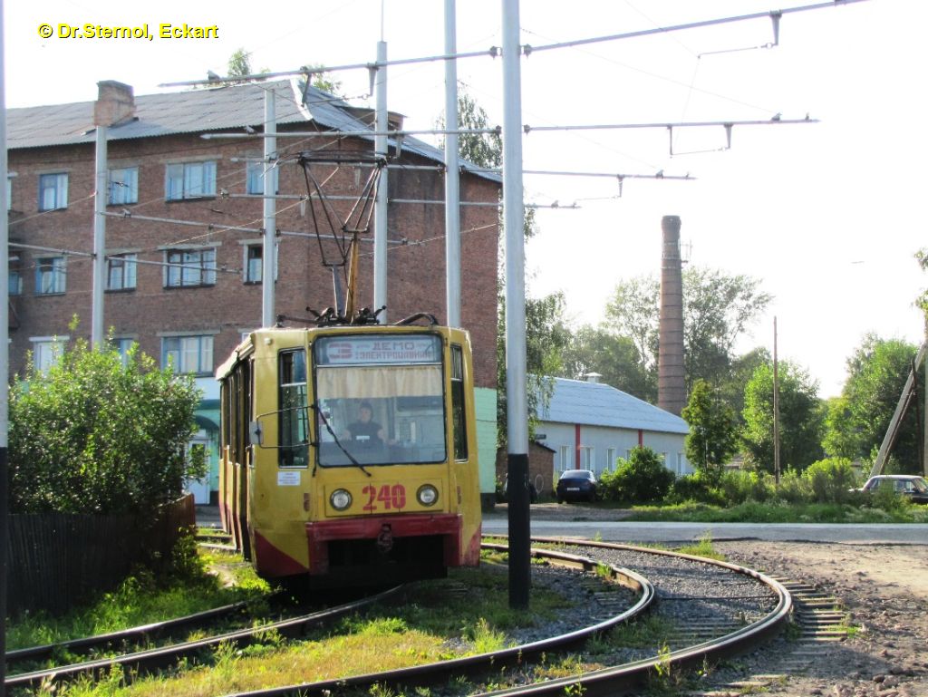 | Weit bis zur Endstelle Tramwajnoje Depo no. 2 - Betriebshof Nr. 2 nicht mehr, als Wagen 240 nahe der Hst. DK im. Gorkogo - Kulturhaus namens Gorki - nach rechts abbiegt. Dr. Sternol, Eckart Dr.Sternol@t-online.de |