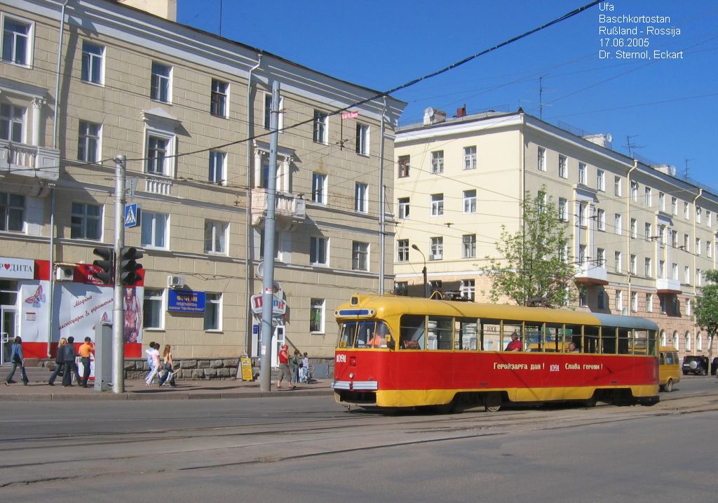 | IMG 7118 Ufa St 17.06.05 Wagen 1091, Linie 10, nahe der Hst zentralny rynok auf der Fahrt in Richtung Bahnhof - Dsershinskogo. Dr. Sternol, Eckart (Foto) Eckart.Sternol@bahn.de |