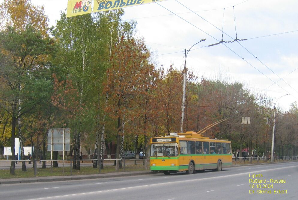 | IMG 1692 Lipezk O 18.10.04 O-Bus 003, Linie 7 im Zentrum, sie verbindet auf langem Weg das Wohngebiet "10. Mikrorajon" mit der im Industriegebiet befindlichen Hst. LTS. Dr. Sternol, Eckart (Foto), Eckart.Sternol@bahn.de |