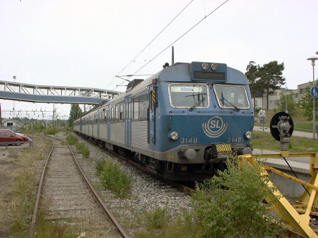 SL X10 3149 as the first arriving localtrain to Bålsta 20 august 2001. This day was the first day they drive to Bålsta via Bro, the day before Kungsängen was end of the line. Photo by Michael Nilsson, Fittja.