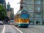 Östgötatrafiken - Sweden Tram type M97 nr. 61 with a low-floor middle section arrives at the tracks in front of thr railway station. Norrköping, 29 June 2004 Digital photo by Marco van Uden |