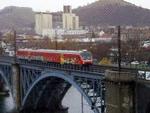 SZ class 813/814 crossing bridge in Solkan (Transalpina)