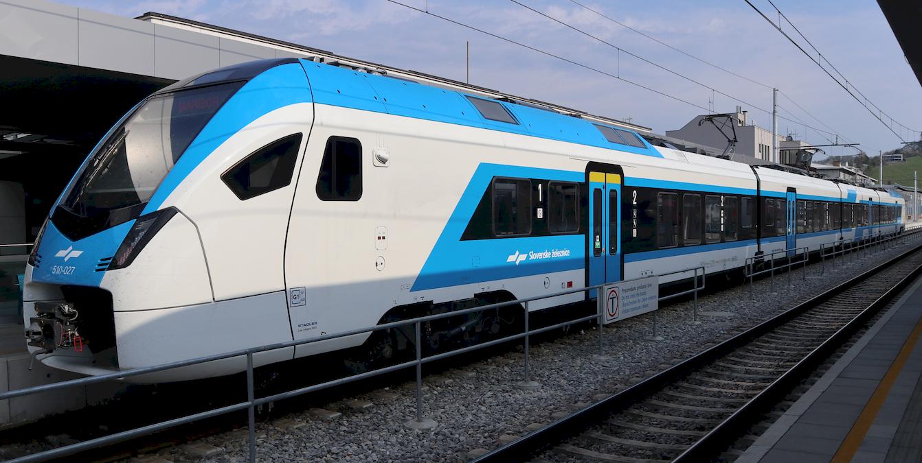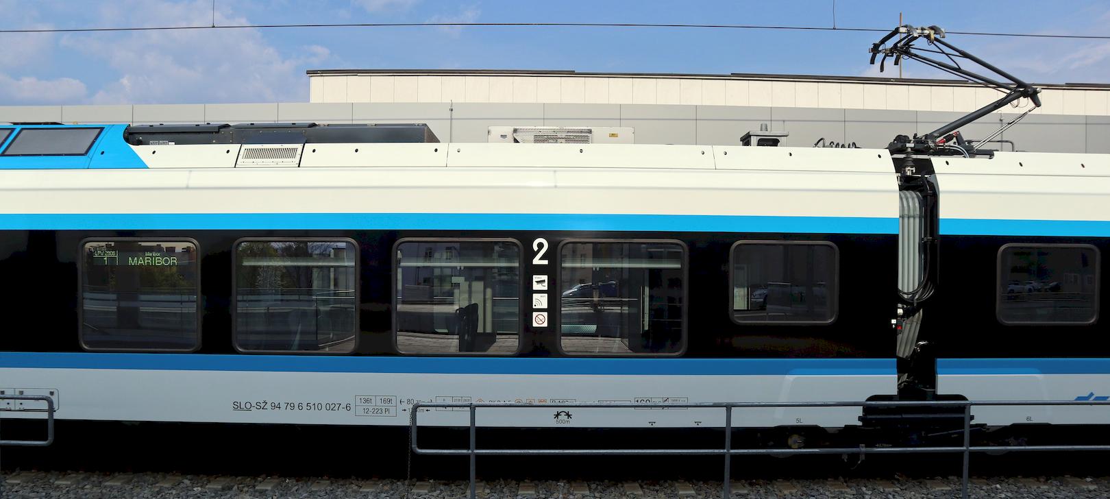 | SLO-SŽ 94 79 6 510 027-6, one of 21 multi-system FLIRT delivered 2021 by Stadler to Slovenske železnice. Equipped for international services to Austria and Croatia but currently only approved for Slovenia. Maribor, 2022-04-15. |