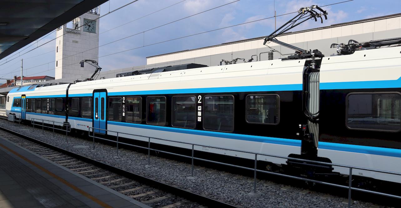 SLO-SŽ 94 79 6 510 034-2 (Stadler 2021) arriving as MV 156 Ljubljana - Graz (first regular use of multi-system FLIRT on this line).