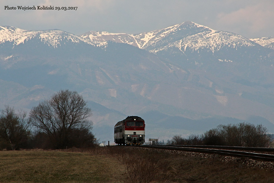 Zeleznicna spolocnost Slovensko, a.s. (ZSSK) 754 011-5 with a passenger train Vrutky - Zvolen 29.03.2017, track Horna Stubna zastavka - Horna Stubna Photo W. Kolins |