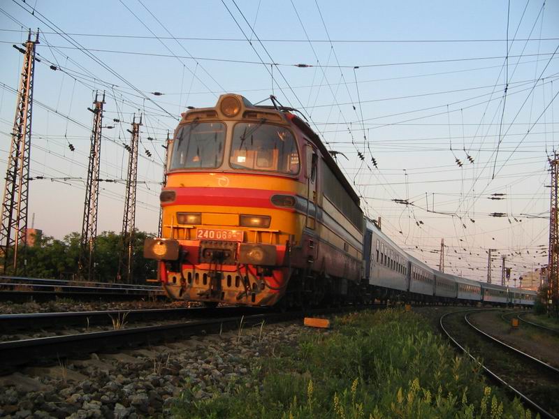 "Laminatka" 240 ZSSK po odchode z bratislavskej hlavnej stanice s R 375 "Pannonia" do Bucuresti Nord.