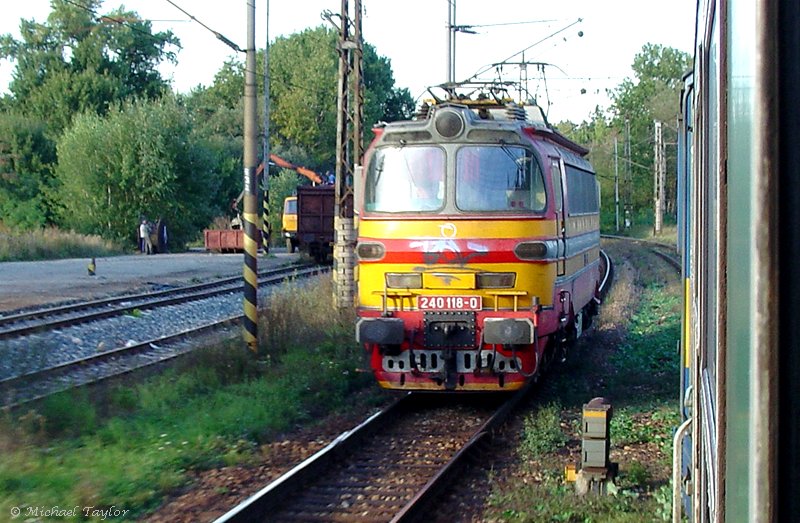 Slovak 240 118-0 at Kúty photographed on Friday October 1st, 2004 from the late running train D944 (08:00 Lököshaza, HU to Praha).