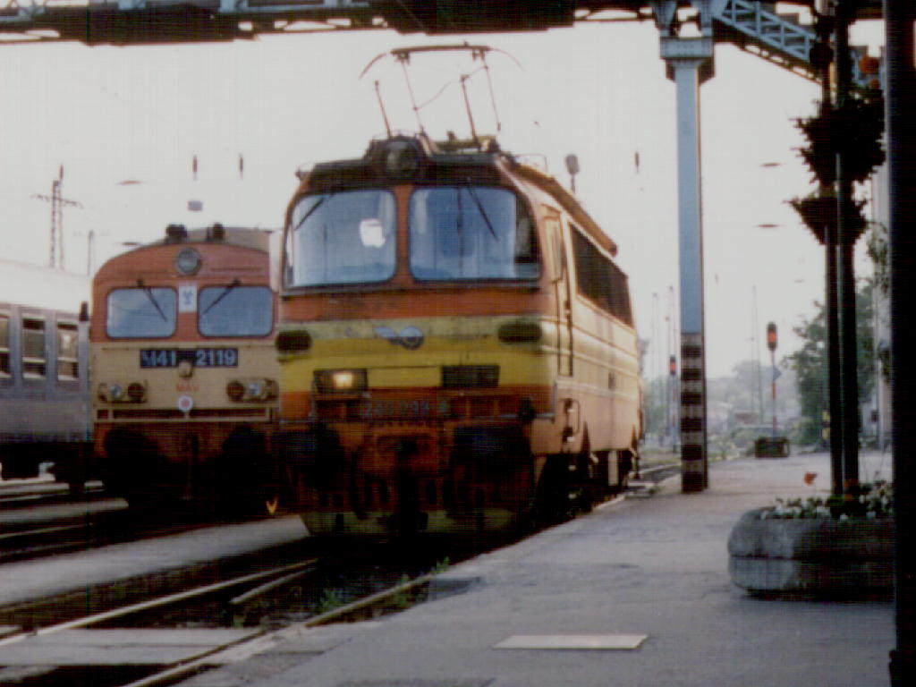 ZSR class 240 electric at Komárom station, May 1996 Photo and scan: Zsolt Kemény (galaxy@impulzus.sch.bme.hu) |
