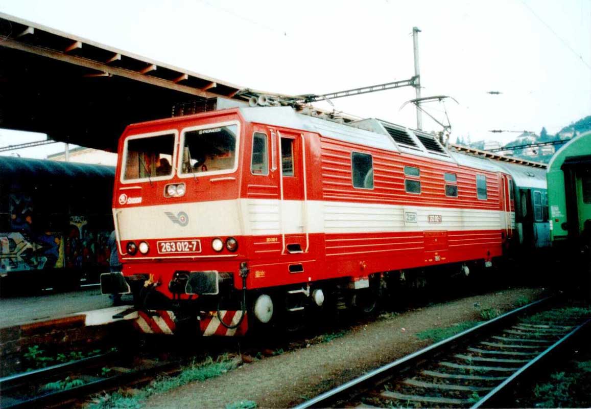 The ZS 263 010-1 electric locomotive in Bratislava main station on 2003 may 4.