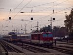 An electric locomotive of class 350 with number 350 015-4 of ZSS ( Zeleznicna Spolocnost Slovakia / Slovakian Railways) with IC 524 from Kosice to Bratislava hl.st.