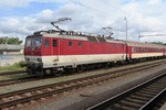 An electric locomotive of class 362 with number 362 009-3 of ZSS ( Zeleznicna Spolocnost Slovakia / Slovakian Railways) at railway station Bratislava hl.st. with passenger train.