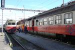Electric unit of ZS (former ZSR) 560 013-5 is leaving station Tranva with personal
