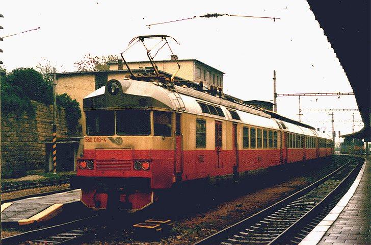 Electric multiple unit 560 018-4 as EMOs 3035 on the station Bratislava hl.st. /ŽSR/. 25.10. 1998