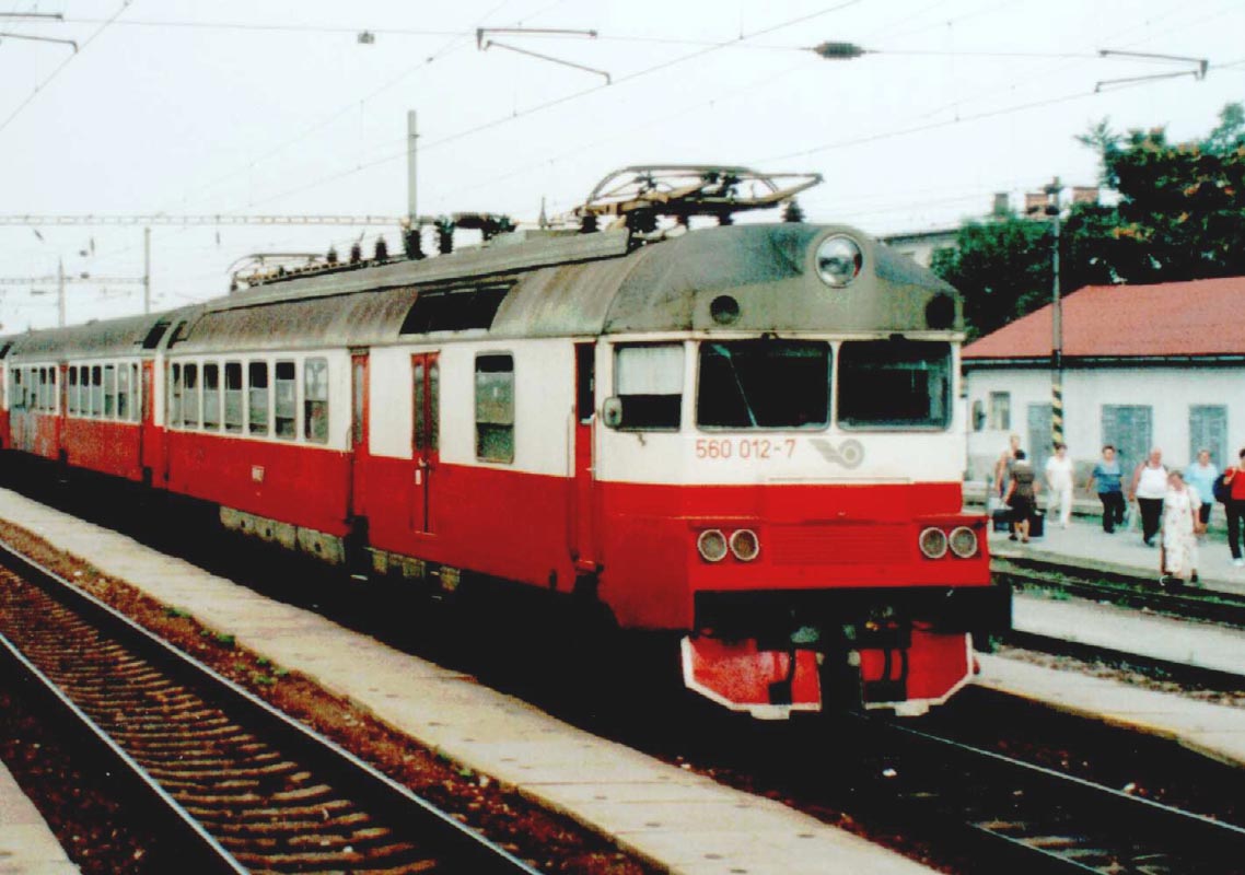 560 class in Trnava Emu of 560 class is used on rush railways electrified by 25.000 V/50 Hz. Photographed by Richard Bilek, http://come.to/doprava |