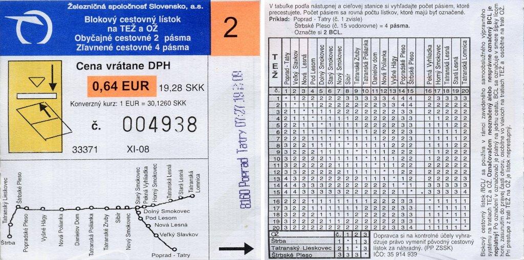 Block ticket 2 zones for Tatra Electric Tram validated at Poprad-Tatry station (Slovakia)